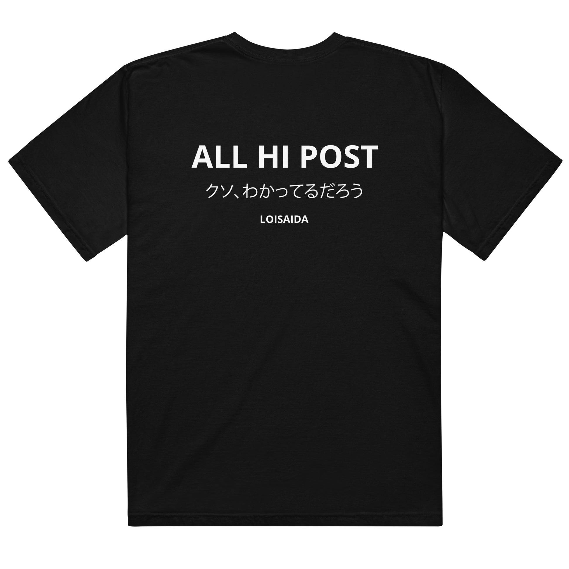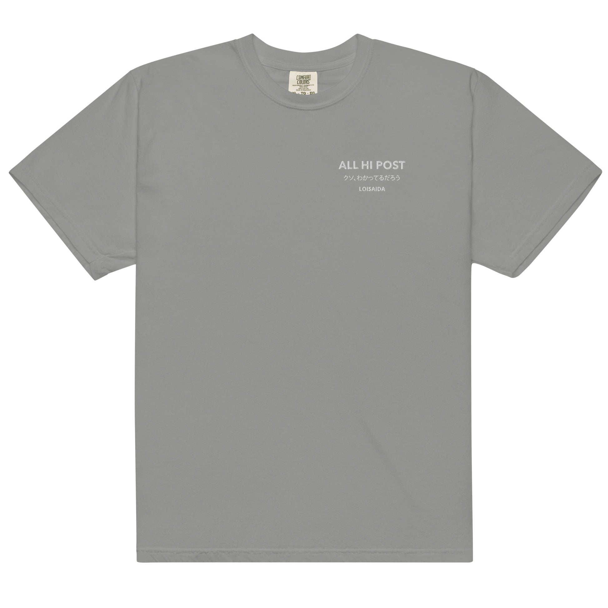 This heavyweight t-shirt is the icing on your style cake! You can wear 'designer' without feeling guilty. Hi Post for your neighborhood designer needs. Left chest embroidery, print on back.