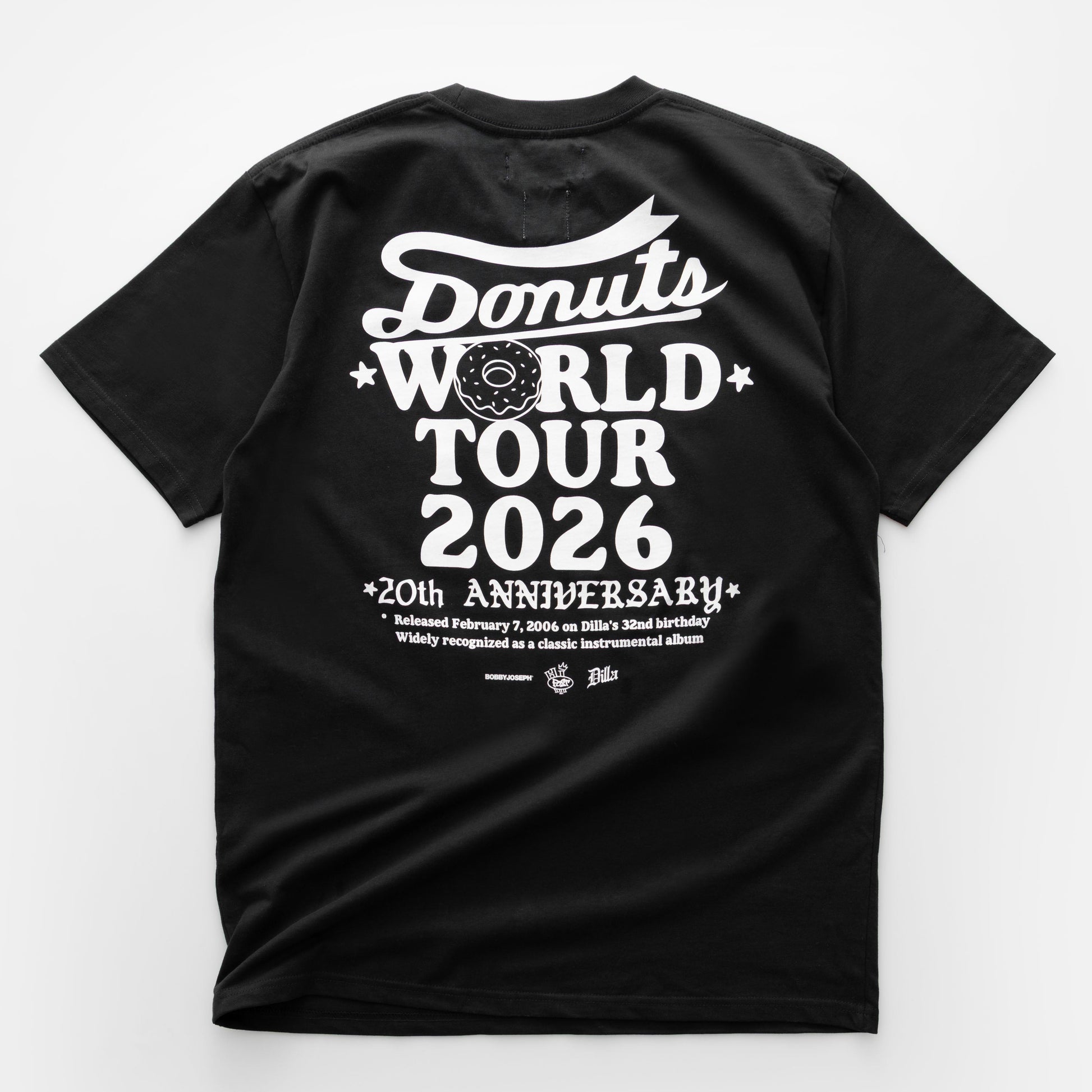 BOBBYJOSEPH and Hi Post collab with a t-shirt commemorating J Dilla's 20 year anniversary of the Donuts album release. (Navy only--for now)